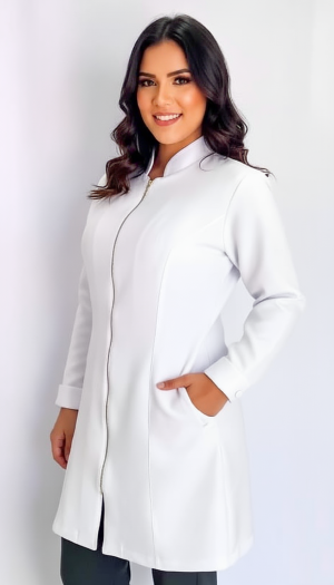 Jaleco neocomfort, com zíper, não amassa e ajusta perfeitamente ao corpo.